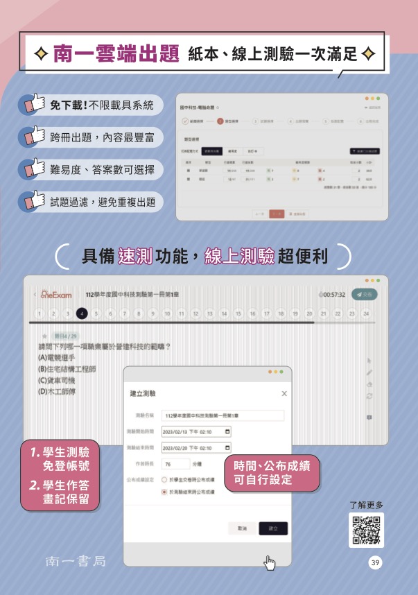 一站整合老師需要的所有資源,雲端出題超便利。
